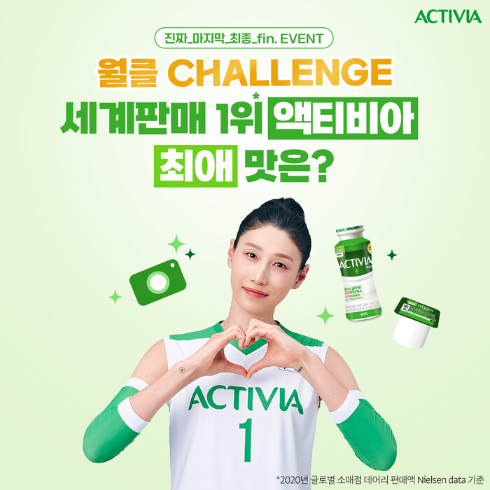 이번 이벤트는 월드클래스 김연경 선수 모델 발탁 이후 액티비아 제품에 대한 지속적인 관심과 사랑을 보내준 소비자들에게 더 많은 혜택을 제공하고자 마련됐다. 10년 연속 세계 판매 1위 풀무원다논 액티비아는 지난 5월 ‘No.1’이라는 공통점을 지닌 배구 선수 김연경을 브랜드 앰버서더로 위촉하고 주요 제품 패키지를 재단장해 선보이며 소비자들의 많은 관심을 받고 있다.