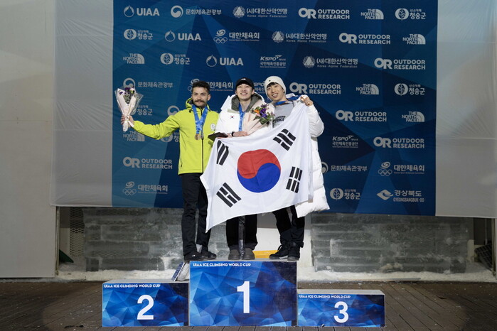 [메가경제=이동훈 기자] 사단법인 대한산악연맹(회장 손중호)은 '2025 UIAA 청송 아이스클라이밍 월드컵 대회'에서 대한민국 이영건 선수(월출마당산악회, 노스페이스 애슬리트팀)가 리드 부문에서 우승했다고 밝혔다.
