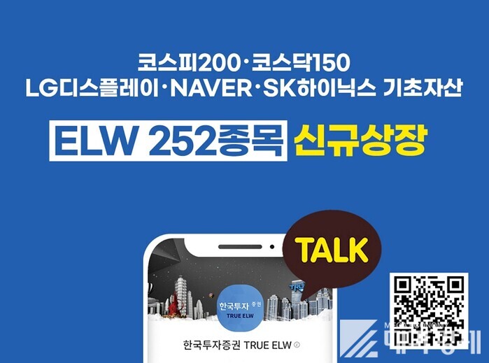 [메가경제=황동현 기자] 한국금융지주 자회사 한국투자증권(사장 정일문)은 주식워런트증권(ELW) 252종목을 신규 상장한다고 17일 밝혔다.