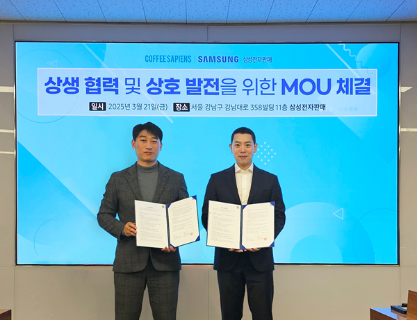 [메가경제=양대선 기자] 커피 전문 브랜드 커피사피엔스가 삼성전자 판매 주식회사와 업무협약(MOU)을 체결하며 임직원 복리후생 증진과 가맹점 사업자의 부담 경감을 위한 협력을 강화한다고 밝혔다.