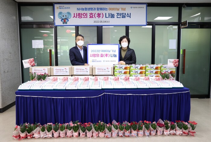 NH농협생명(대표이사 김인태)이 지난 4일 다가올 어버이날을 맞아 지역사회 어르신을 위한 효 꾸러미 1000개를 지원했다고 밝혔다.
