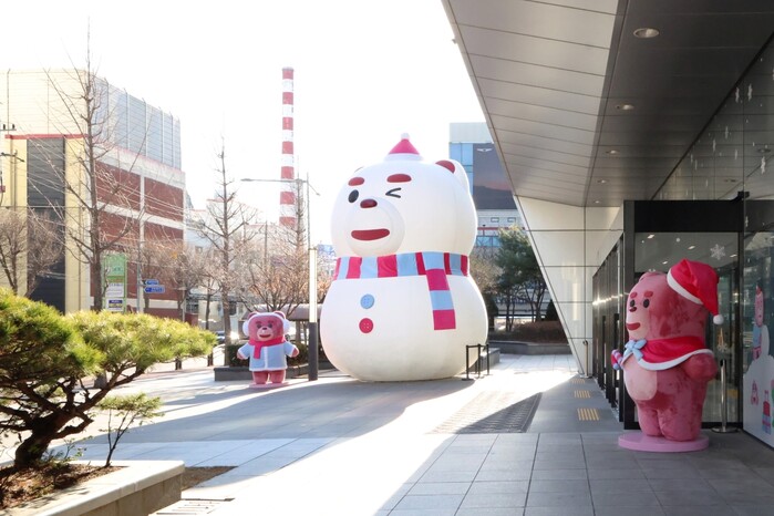 본사 사옥 앞에는 7m 크기의 눈사람 콘셉트 벨리곰을 비롯해 겨울 의상을 입은 2m 크기 벨리곰 등 총 3기의 대형 조형물이 설치됐다. 사옥 외벽에는 크리스마스 등 계절 테마를 반영한 벨리곰 디자인 래핑을 적용해 시각적 완성도를 높였으며, 사옥 내부에는 벨리곰 굿즈를 구매할 수 있는 무인 자판기도 마련했다.