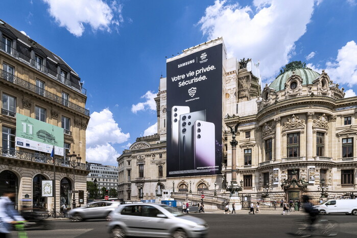 삼성전자는 파리 중심부에 위치한 오페라 극장 '오페라 가르니에'의 대형 옥외광고에 '2030 부산세계박람회' 로고를 함께 선보이고 있다.