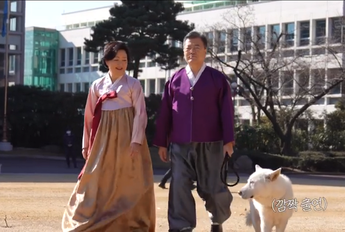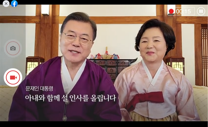 이날 동영상 설날 인사는 청와대 상춘재에서 문 대통령 부부가 직접 휴대폰을 통해 촬영하는 과정이 담겼다.