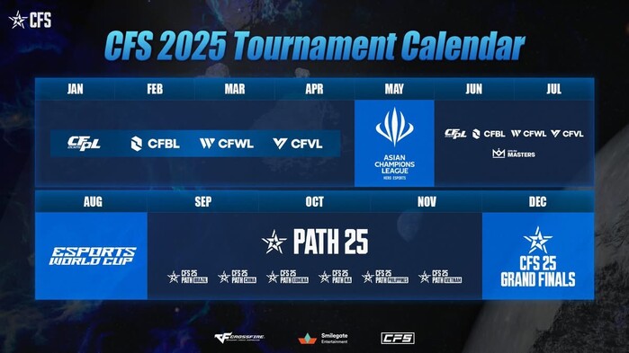 EWC의 여운이 가시기 전에 CFS 그랜드 파이널을 향한 여정이 시작된다. 9월부터 약 3개월간 ‘CFS PATH 25’로 명명된 각 권역별 예선전이 치러진다. CFS PATH 25에서 살아남은 팀들은 12월, 크로스파이어의 진정한 최강자를 가리는 ‘CFS 2025 그랜드 파이널’에서 왕좌를 두고 경쟁을 펼쳐야 한다.