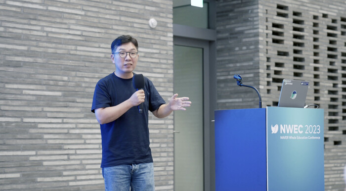 ▲ NWEC 2023 오프닝 발표를 진행하는 김유원 네이버클라우드 대표. [사진=네이버클라우드] |