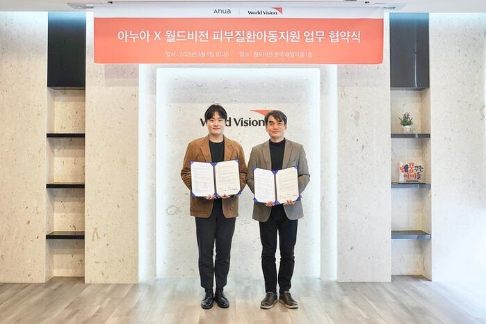 김성태 월드비전 ESG사회공헌본부장은 “피부질환으로 어려움을 겪고 있는 아이들을 위해 전문성을 활용해 함께 협력해 주신 아누아에 감사드린다”며 “이번 협약을 계기로 앞으로도 좋은 관계를 쌓으며 더 많은 아이들이 도움받을 수 있기를 바란다”고 전했다.