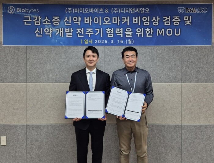 이번 협약에 따라 디티앤씨알오는 바이오바이츠가 발굴한 근감소증 관련 바이오마커 10종에 대한 비임상 유효성 평가를 맡는다. 바이오바이츠는 해당 바이오마커의 유효성이 확인될 경우 이를 기반으로 AI 기반 신약 후보물질 설계 및 합성, 글로벌 기술이전 전략을 본격화할 계획이다.