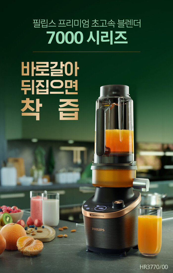 이 제품은 130년 이상의 전통 브랜드 필립스가 올해 출시한 최신상품이며 블렌더 라인업 중 최고 사양이다. 주스 추출 모듈이 있는 필립스 최초의 고속 블렌더 제품으로 초고속 블렌더와 착즙기를 하나로 합쳐 블렌딩 후 용기 교체 없이 착즙까지 가능한 것이 특징이다.