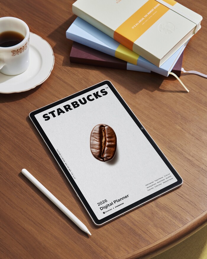 매거진 콘셉트로 기획된 이번 디지털 플래너는 일상 속 감정과 생각을 정리하는 ‘무드 트래커(Mood Tracker)’, 오늘 스타벅스에서 즐긴 음료와 매장 등 특별한 테이스팅 노트를 기록할 수 있는 ‘스타벅스 트래커(Starbucks Tracker), 나만의 착장 스타일을 남기는 ‘오늘의 착장(My OOTD)’ 페이지까지 나만의 취향을 오롯이 담아낼 수 있도록 구성됐다.