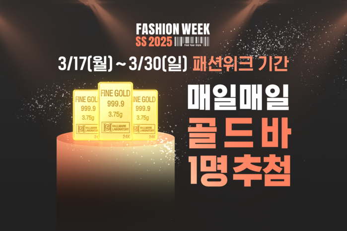 패션위크 기간 내 구매고객 대상 매일 추첨을 통해 ‘골드바 1돈(14명)’을 증정하는 파격적인 혜택도 준비했다. 패션위크 오프닝과 피날레 방송에서는 추첨을 통해 ‘신세계 상품권 5만원권(6명)’을 증정하고, 일부 상품에 대해서는 모바일 구매 시 10% 적립과 최대 7% 카드 청구할인을 제공한다.