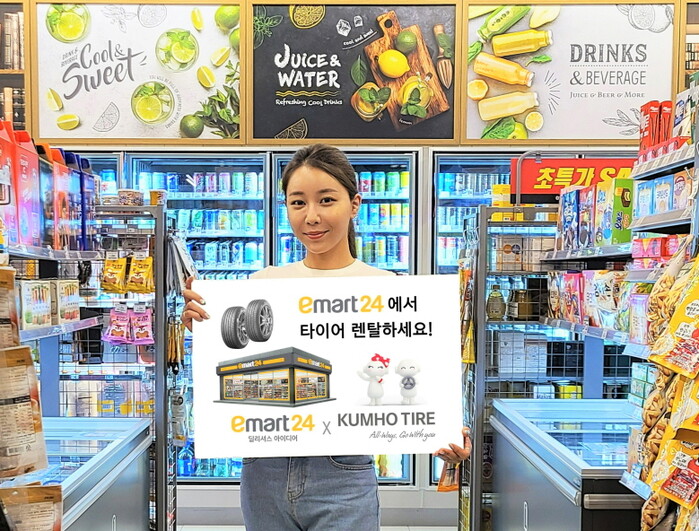 이마트24는 전국 매장에서 금호타이어와 타이어를 대여해주는 '또로로로 렌탈 서비스'를 시작한다고 18일 밝혔다.