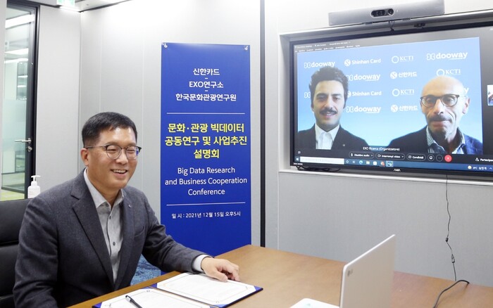 신한카드는 공동 연구의 원활한 진행을 위한 설명회를 지난 15일 개최했다. 설명회는 김일봉 신한카드 라이프사업본부장, 파우스토 빌라니(Fausto Villani) 엑소 리체르카 대표, 김성진 한국문화관광연구원 정책정보센터장 등 관계자들이 참석한 가운데 영상 회의 방식으로 진행했다.