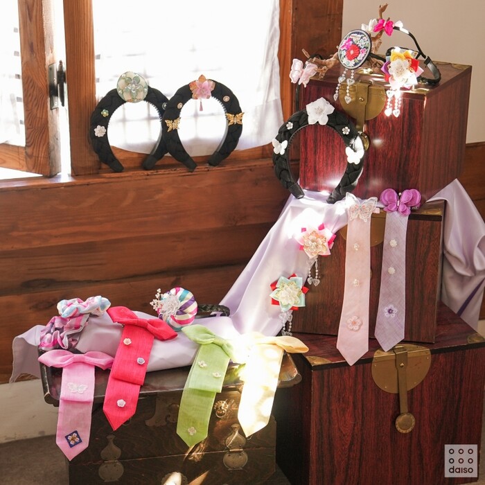 오랜만에 만나는 친인척들과 추석 인증샷을 찍기 좋은 전통 액세서리를 준비했다. 섬세하게 수놓아진 '자수 머리띠'를 비롯해 옛스러운 매력이 있는 '가체머리띠', 화려한 듯 단아한 '리본 머리핀'을 통해 작은 포인트를 주어 추석빔을 완성할 수 있다. 또한 꽂아주기만 하면 되는 ‘댕기 머리핀’까지 준비해 고급스러운 포인트 아이템으로 명절 분위기를 연출할 수 있다.
