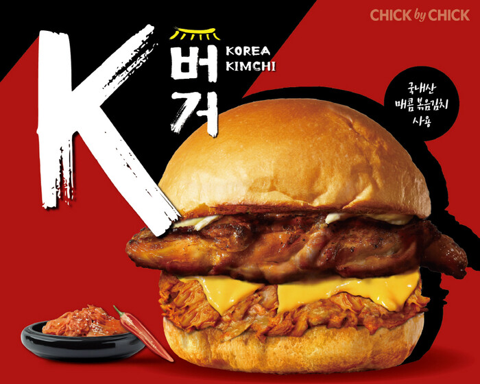 케이버거는 김치를 활용한 칙바이칙의 두번째 메뉴다. 지난해에는 여수 돌산 갓김치를 활용한 ‘갓김치 치킨 라이스볼’을 선보인 바 있다.