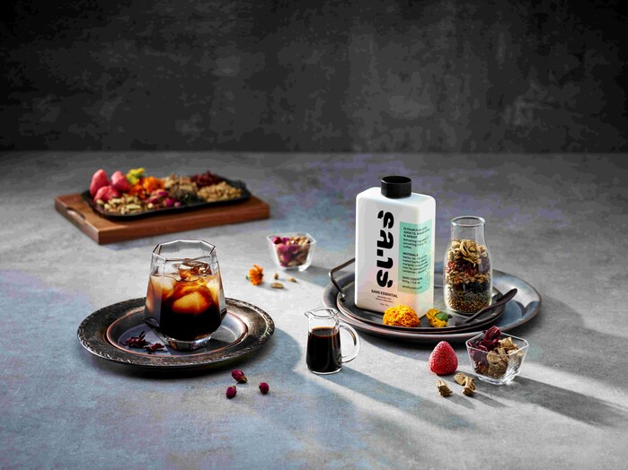 산스는 커피 원두 대신 대추야자씨앗, 호밀, 보리, 히비스커스, 로즈힙, 자스민, 라벤더 등 12가지 이상의 천연 원료를 활용하는 대체 커피 브랜드다. 카페인이 기본적으로 포함되지 않아 시간대 제약 없이 음용이 가능하다.