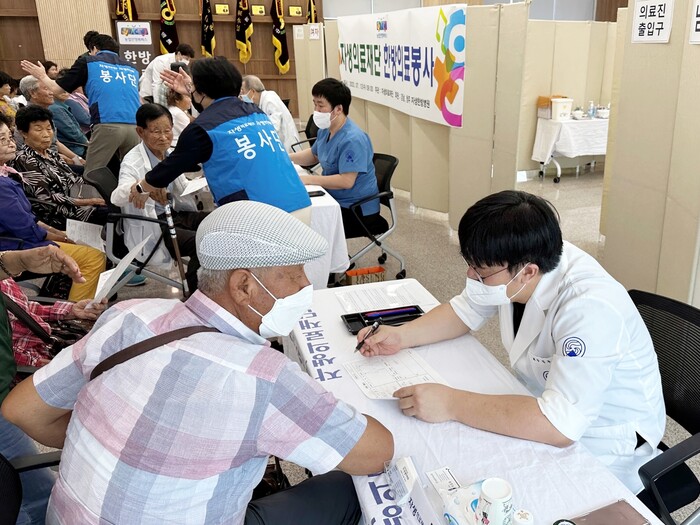 ▲청주자생한방병원이 장마철 대비 농촌의료봉사를 실시했다[사진=자생한방병원] |