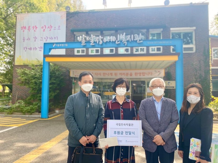 ▲ 국립민속박물관 에서 서울시립발달장애인복지관에 후원금 전달식을 가졌다.[사진= 메가경제신문]