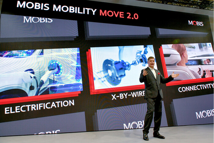 현대모비스는 현지 시각으로 4일 독일 뮌헨에서 진행된 ‘IAA 모빌리티 2023’ 프레스데이 발표회에서 ‘MOBIS MOBILITY MOVE 2.0’을 주제로 유럽 시장 공략 전략을 소개했다. 이날 발표에는 현대모비스가 배터리시스템과 PE시스템 등 전동화 핵심 부품을 필두로 차세대 샤시 기술과 커넥티비티 등 3대 솔루션으로 유럽 모빌리티 시장을 공략하겠다는 내용이 담겼다.