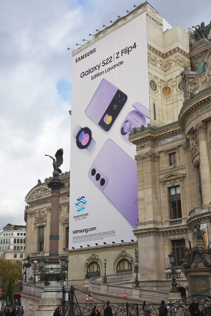 삼성전자는 파리 중심부의 오페라 극장 '오페라 가르니에'의 대형 옥외광고에 부산엑스포 로고를 함께 내걸고 있다. 이곳은 일일 평균 유동 인구가 50만 명에 이르는 대표적인 관광 명소로 알려졌다.