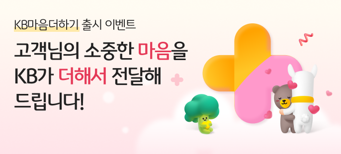[메가경제=송현섭 기자] KB국민은행은 ‘KB마음더하기’ 출시를 기념해 오는 10월말까지 ‘KB와 함께 소중한 마음을 더해보세요’ 이벤트를 실시한다고 8일 밝혔다.