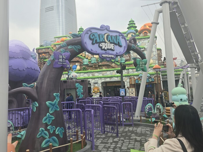첫번째로 만나본 어트랙션 '아르카나 라이드'는 정령의 나무를 되살리는 스토리를 바탕으로 만든 놀이기구로, 나무 주위를 빙글빙글 회전하는 컨셉으로 구성됐다.