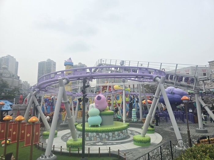 기존 어트랙션 '자이로 스핀'도 메이플 아일랜드 콘셉트에 맞춰 리뉴얼됐다. 탑승 시 중앙에 위치한 핑크빈과 함께 빠른 속도로 회전하며 상하좌우 이동을 반복하는 놀이기구로, 이곳에 가장 많은 인파가 몰렸다.