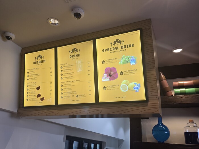 | ▲'메이플 스위츠' 카페 메뉴판. [사진=메가경제] |