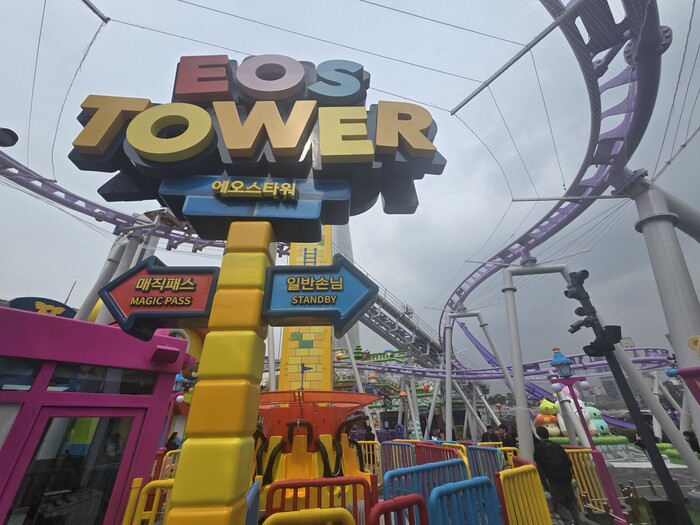 롯데월드 내 '자이로드롭'을 연상케하는 '에오스 타워'는 정상에 도달하는 순간 석촌호수와 메이플 아일랜드 전경이 한눈에 담을 수 있었다.