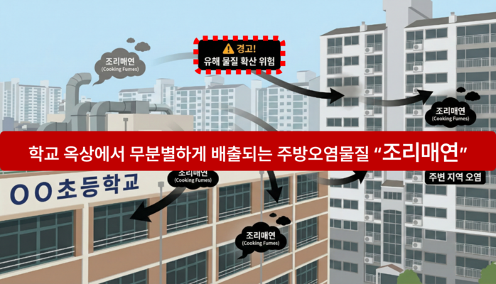 그동안 교육당국은 급식실 내부 공기질 개선을 위해 환기 설비 확충에 주력해 왔다. 그러나 이는 주방 내부의 오염물질을 외부로 '밀어내는' 임시방편에 불과하다필터링 시설 없이 배출된 조리매연은 결국 학교 주변 지역사회의 환경권을 침해하는 또 다른 갈등의 불씨가 되고 있다.