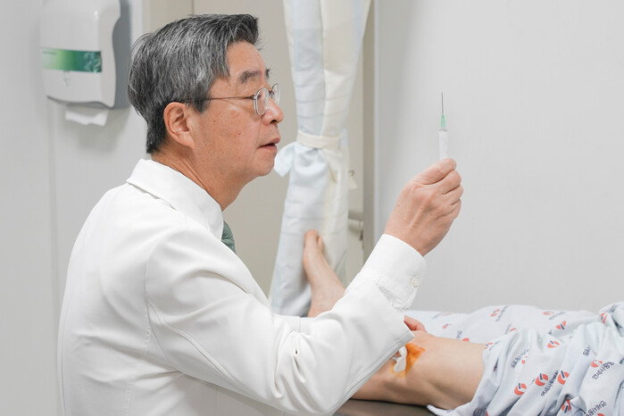 | ▲ 고용곤 연세사랑병원 원장이 환자에게 SVF 주사치료를 시행하고 있다. |