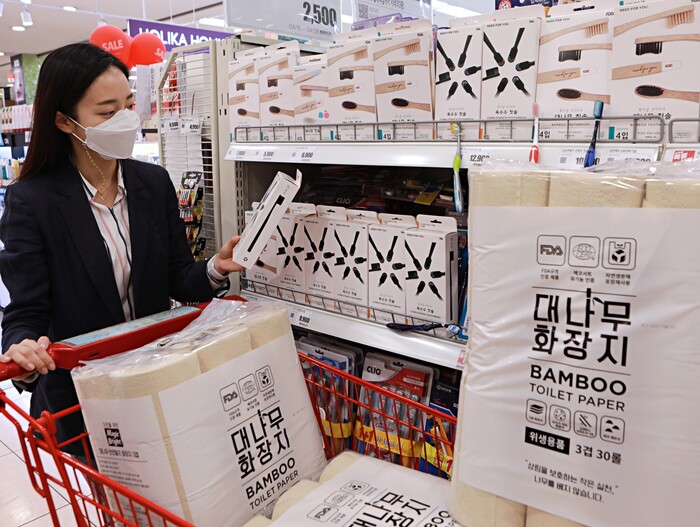 롯데마트는 29일부터 전 지점에서 우수 중소기업과 협업해 대나무 소재로 만든 칫솔과 화장지를 출시한다고 28일 밝혔다.