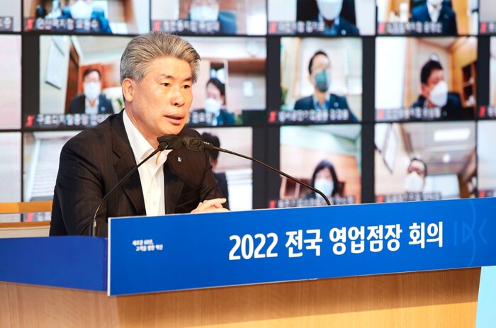 IBK기업은행(은행장 윤종원)은 지난 11일 서울 중구 을지로 기업은행 본점에서 “전국 영업점장 회의”를 개최하고 2022년 주요 전략방향과 추진과제를 공유했다고 밝혔다. 이번 회의는 정부 방역지침에 맞춰 일부 임직원이 참석한 현장 진행과 실시간 화상회의로 진행됐다.