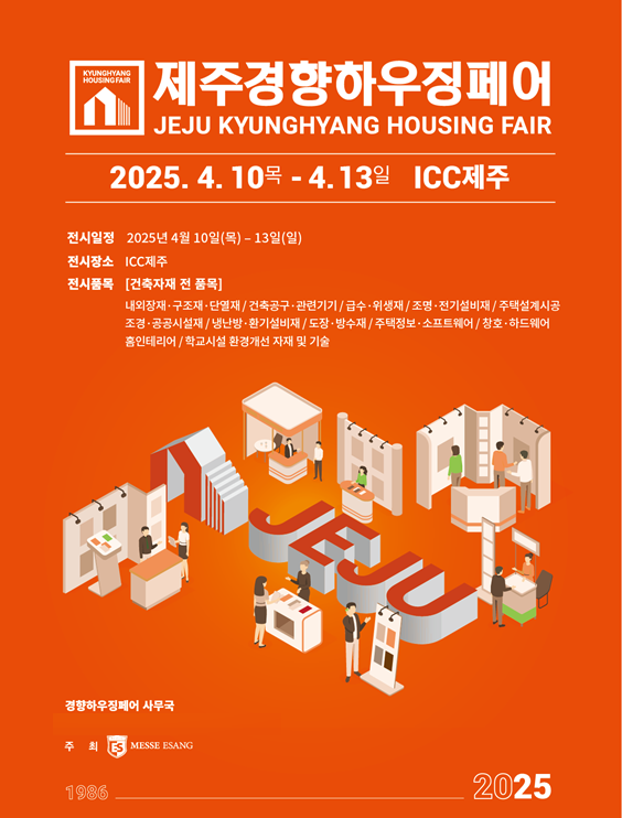 [메가경제=양대선 기자] 제주 유일 건축·인테리어 박람회 ‘2025 제주경향하우징페어’가 오는 4월 10일부터 13일까지 4일간 제주국제컨벤션센터(ICC JEJU)에서 개최된다. 이번 박람회는 제주 지역의 건축·인테리어 산업에 특화된 제품과 기술을 한자리에서 만나볼 수 있는 기회로 업계 종사자는 물론 건축·인테리어 수요자들에게 실용적인 솔루션을 제공할 예정이다.