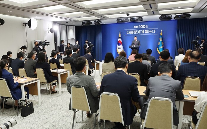 | ▲ 윤석열 대통령의 취임 100일 기자회견장 모습. [서울=연합뉴스] |