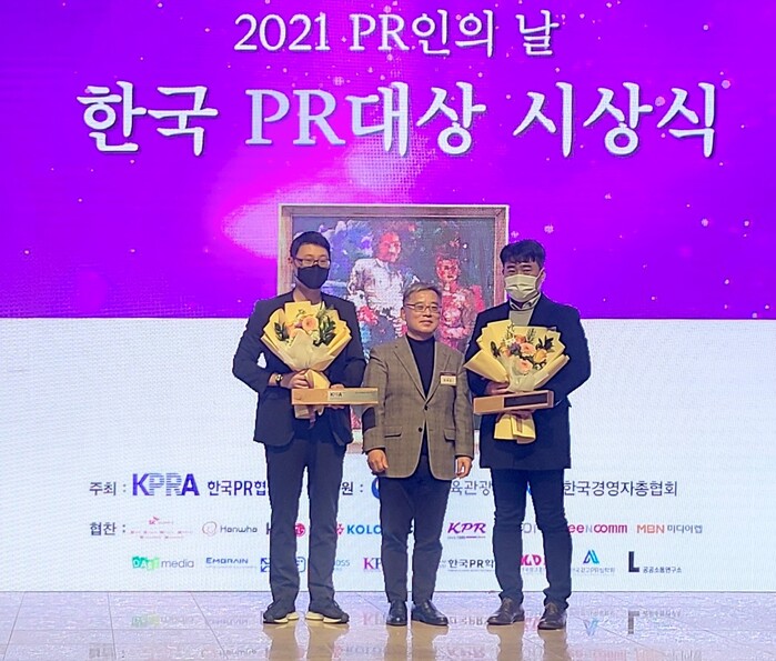 | ▲ 한국 PR 대상 시상식 무대에 올라 수상하는 대웅제약 관계자 [사진=대웅제약 제공] |