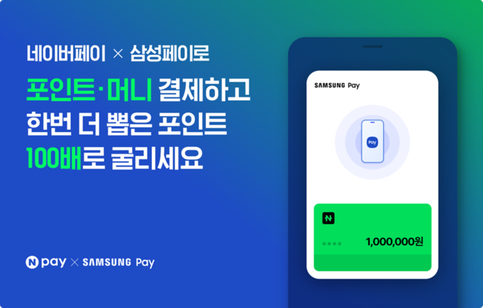 또한 오는 10월 31일까지, 네이버페이 머니·포인트로 삼성페이 결제를 이용한 모든 사용자에게 뽑은 포인트와 동일한 금액을 한번 더 보너스로 제공한다. 이중 매일 무작위로 선정된 사용자 100명에게는 뽑은 포인트의 100배를 지급한다.