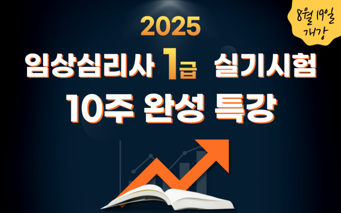 [메가경제=양대선 기자] 교육 상담 전문기관 조이학습심리상담센터가 ‘2025년 임상심리사 1급 실기시험’ 대비 10주 특강을 오는 8월 19일부터 개강한다고 11일 밝혔다.