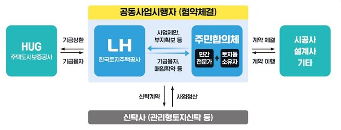 특히, LH가 주민과 함께 공동시행자로 사업을 추진하는 ‘LH 참여형 사업’의 경우, △사업비 최대 90%까지 저리 지원(1.2%/년) △미분양주택 LH 매입 확약 △이주비 지원 △사업시행 면적 확대 △건축규제 완화 등 다양한 인센티브를 받을 수 있다.