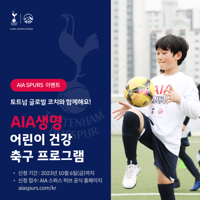 [메가경제=송현섭 기자] AIA생명은 오는 11월 영국 프리미어리그 토트넘 홋스퍼 코치진을 초청해 ‘AIA생명 어린이 건강 축구 프로그램’을 진행한다고 22일 밝혔다.