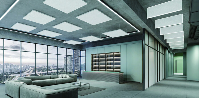 KCC의 대표 천장재인 ‘마이톤’을 기반으로 천장 전체를 시공하지 않고도 효과적인 흡음효과를 기대할 수 있는 제품이다. 고급 소재와 혁신적인 디자인을 접목해 카페, 사무실등 다양한 공간의 품격과 가치를 높이는 새로운 표준을 제시해 줄 것으로 기대하고 있다.