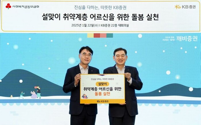 김성현, 이홍구 KB증권 대표이사는 "요즘처럼 불경기 상황에서 지역사회 돌봄이 필요한 어르신들에게 따뜻한 설 명절을 보내길 바라는 마음으로 작은 선물을 준비했다"면서 "KB증권은 앞으로도 다양한 사회공헌활동을 통해 기업의 사회적 책임을 다할 수 있도록 노력하겠다"고 밝혔다.