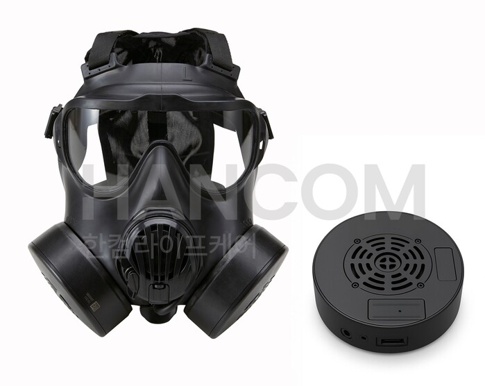 | ▲한컴라이프케어 K-5 방독면과 감지기 예상도. [사진=한컴라이프케어] |