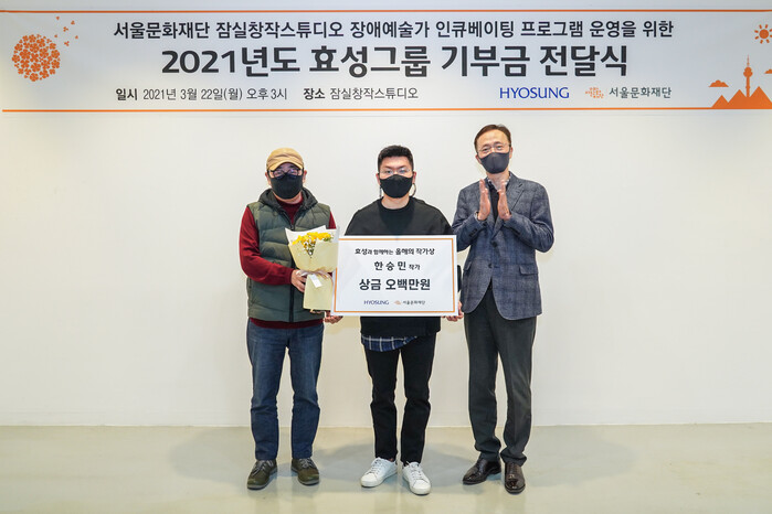 효성은 지난 22일 서울문화재단 잠실창작스튜디오 입주 예술가들을 위한 후원금을 전달했다고 23일 밝혔다.