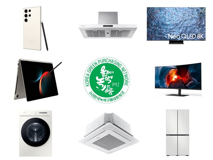 삼성전자 제품 중 ▲비스포크 그랑데 세탁기 AI ▲비스포크 그랑데 건조기 AI ▲비스포크 후드 ▲Neo QLED 8K ▲갤럭시 S23 시리즈 ▲갤럭시 북3 프로 360 등 총 15개가 '올해의 녹색상품'에 선정됐다.