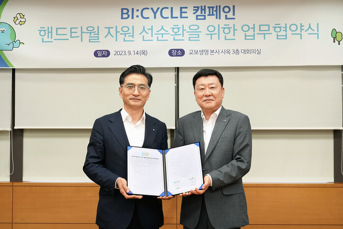 따라서 교보생명과 유한킴벌리 양사는 핸드타월 재활용 사업인 ‘바이사이클(BI:CYCLE)’ 캠페인에 공동으로 참여하며 친환경 경영 촉진과 자원순환환경 구축에 적극적으로 나설 계획이다.