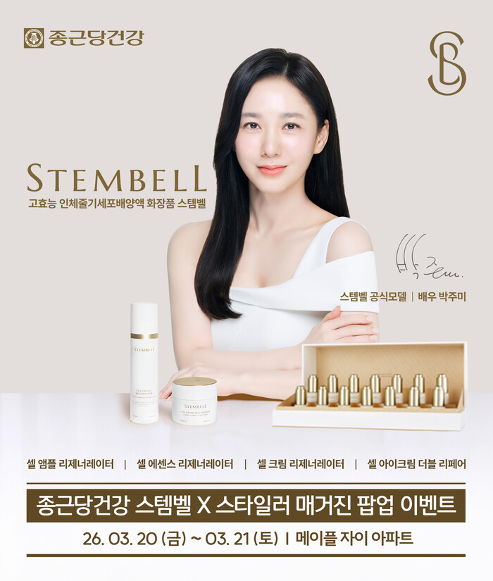 한편 스템벨은 줄기세포의 줄기를 뜻하는 ‘스템(Stem)’과 종근당을 상징하는 종의 ‘벨(Bell)’의 합성어로, 피부 본연의 기능을 강화해 건강한 아름다움을 전하는 것을 지향하는 고효능 인체줄기세포배양액 화장품이다. 종근당건강이 축적한 기술력과 한국 콜마의 공동 개발, 굴지의 인체줄기세포연구기관 셀인바이오가 협력해 탄생했다.