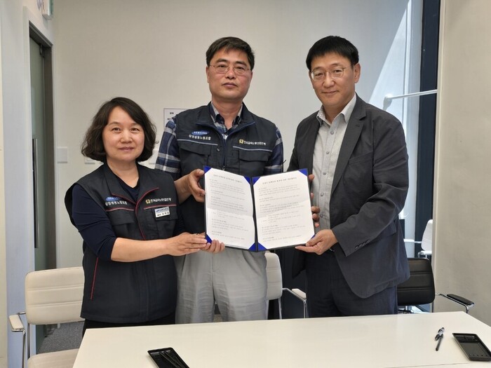 | ▲삼성생명노동조합 설계사지부가 사측인 삼성생명보험회사와 단체교섭에 돌입해 주목된다. <왼쪽부터 이미정 삼성생명노조 공동위원장, 이학섭 삼성생명노조 공동위원장, 이수한 사측 대표교섭위원(개인본부지원팀 수석)>. [사진=삼성생명 노동조합 설계사지부 제공] |