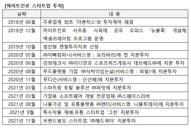 하이트진로(대표 김인규)가 브랜드 빌딩 스타트업 ㈜헤드쿼터와 지분 투자 계약을 체결했다.