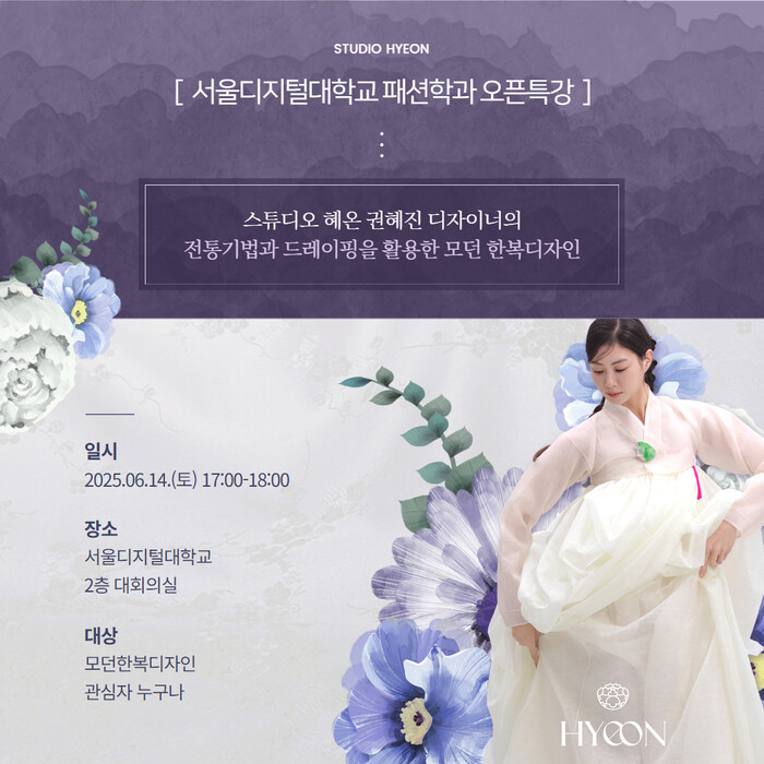이번 오픈 특강은 '전통 기법과 드레이핑을 활용한 모던 한복 디자인'을 주제로, 한복 디자인에 대한 깊이 있는 통찰과 실질적인 디자인 노하우를 공유할 예정이다.